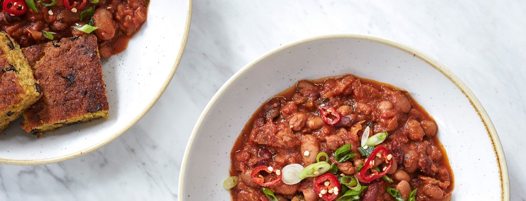 Deliciously Ella’s Five-Bean Chilli with Cornbread